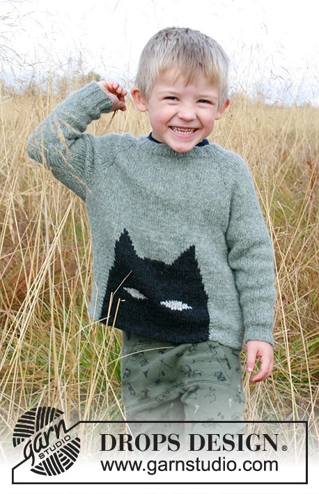 Strikket bluse med flagermus til barn i DROPS Sky. Arbejdet strikkes ovenfra og ned med raglan. Størrelse 2-12 år.