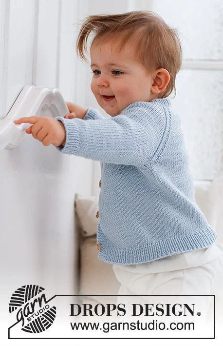 Strikket cardigan til baby og børn i DROPS Merino Extra Fine. Arbejdet strikkes ovenfra og ned med raglan. Størrelse 0 - 4 år.