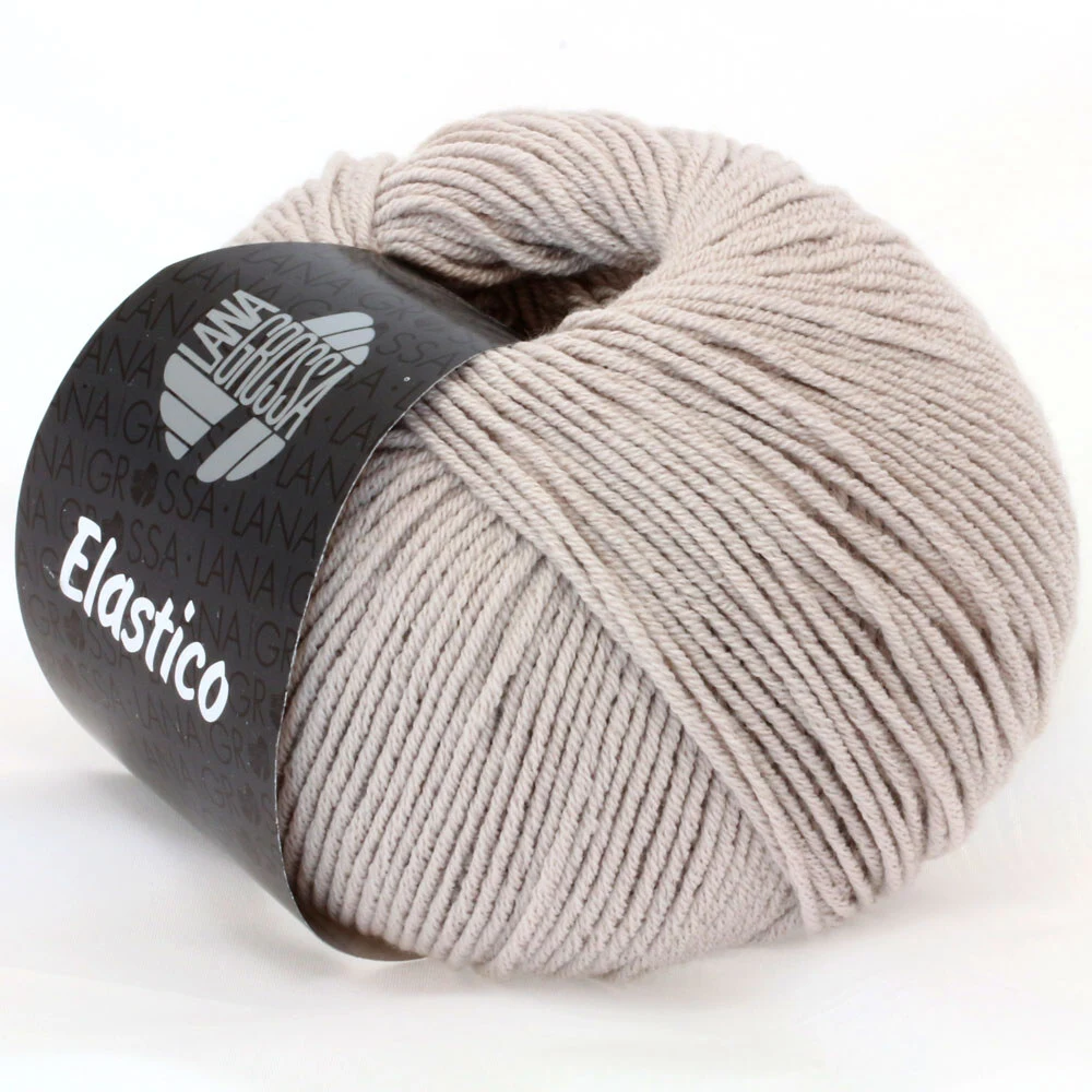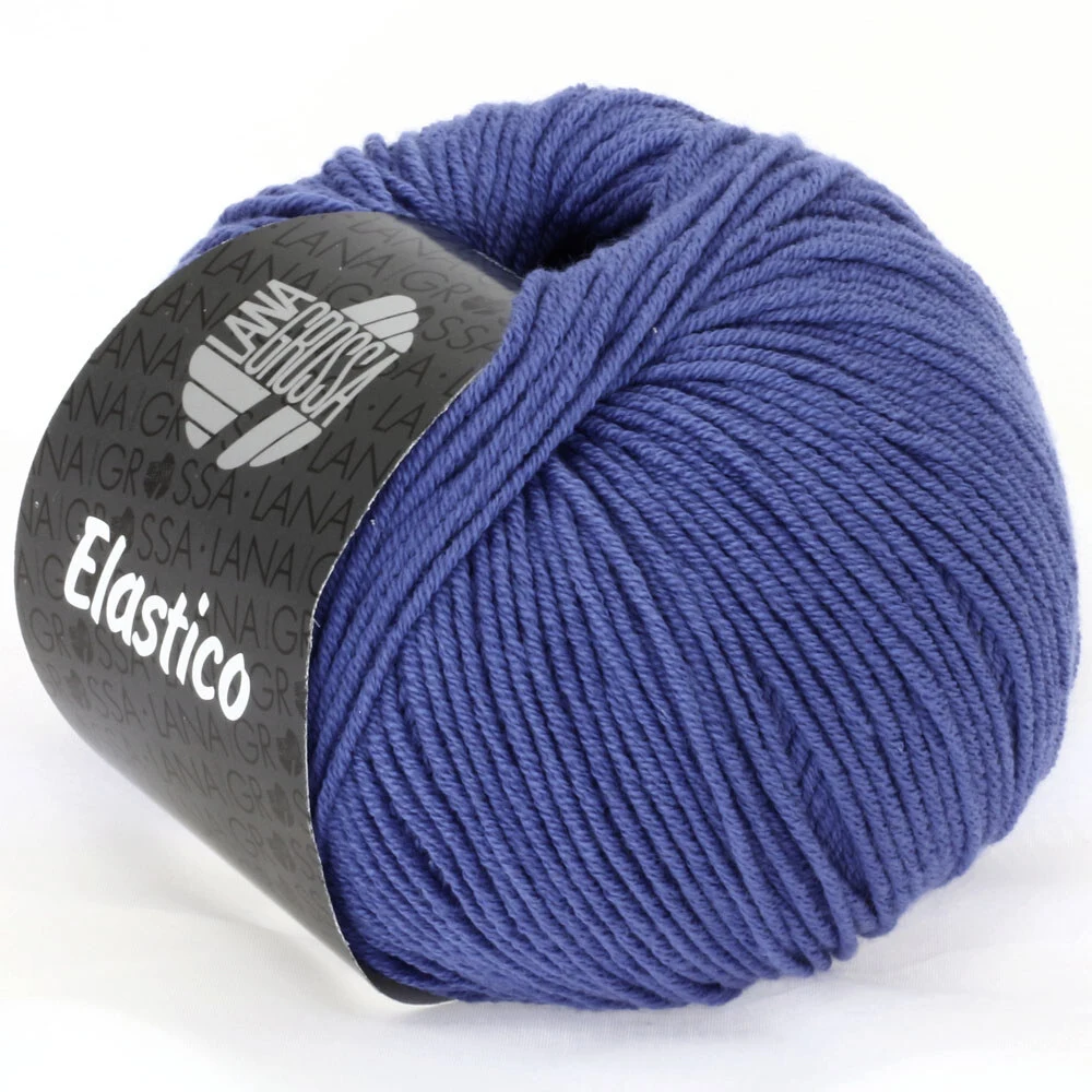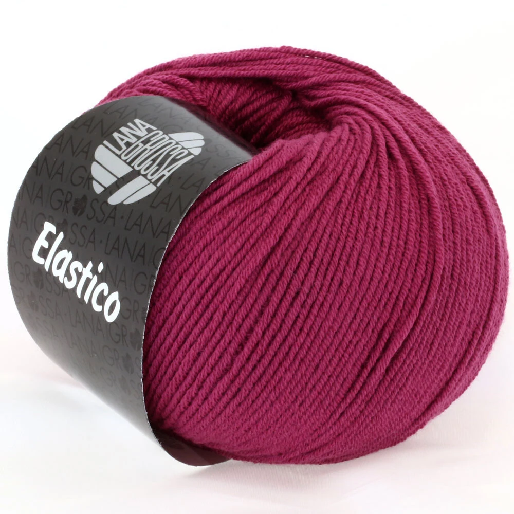 Lana Grossa Elastico er velegnet til striktrøjer, bluser og cardigans, hvor bomulden og polyesteren sikrer et blødt og formfast resultat.