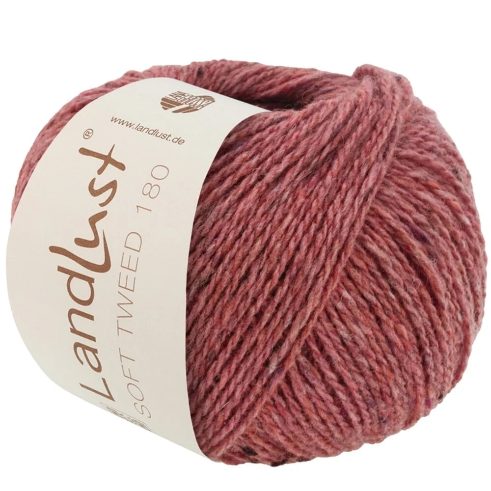 Lana Grossa Landlust Soft Tweed 180 er et klassisk tvundet tweedgarn fremstillet af 100% ren ny merinould, præcis som søstergarnet Landlust Soft Tweed 90, der adskiller sig ved at være lidt tykkere. Garnet er karakteriseret ved sine flerfarvede tweednister, som giver et smukt og naturligt udtryk.