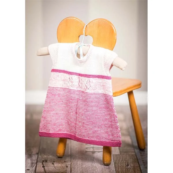 Strikket sød lille kjole til de allermindste i det lækre bløde uldgarn fra Mayflower. Mayflower Merino The Collection består af 100 % Ren Uld Superwash. Garnet løber ca. 160 m pr. 50 gram.