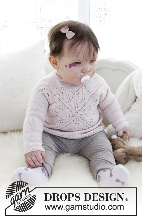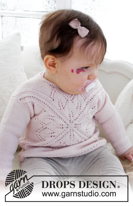 Strikket firkantbluse med hulmønster til baby. Størrelse 1 mdr – 4 år. Arbejdet er strikket i DROPS Baby Merino