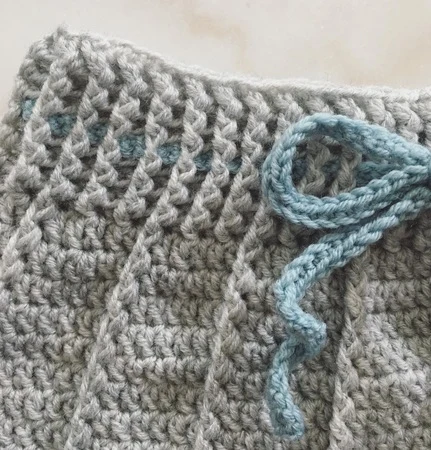 Garn: 100, (150), 150, (200) g – Drops Baby Merino (+en lille rest i kontrastfarve til bindebånd)