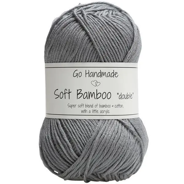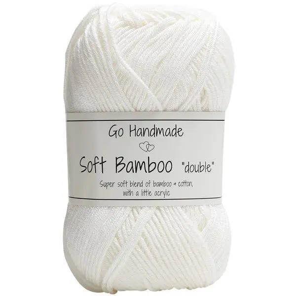 Go Handmade Soft Bamboo "Double" er et ekstra blødt og slidstærkt garn, der er perfekt til babyprojekter og sart hud. Garnet er en tykkere version af Soft Bamboo "Fine" og kombinerer bambusviskose, bomuld og akryl for en unik blanding af komfort og holdbarhed – uden brug af animalske fibre.