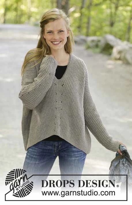 Strikket bluse i DROPS Merino Extra Fine. Arbejdet er strikket frem og tilbage med struktur og forskydning. Størrelse S - XXXL.