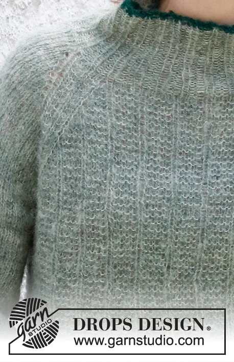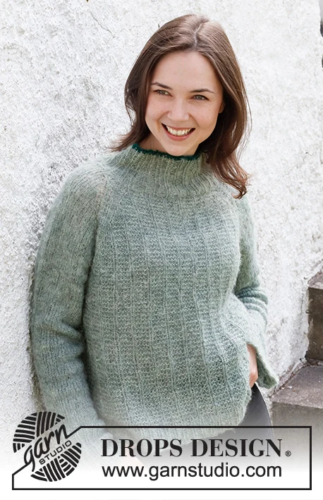 Strikket bluse med raglan i DROPS Brushed Alpaca Silk. Arbejdet strikkes ovenfra og ned med strukturmønster. Størrelse S - XXXL.