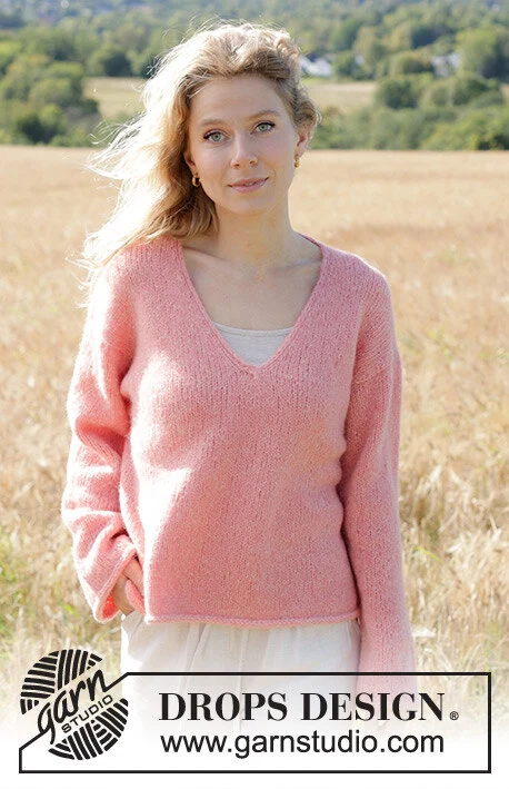 Strikket bluse i DROPS Air eller DROPS Paris. Arbejdet strikkes oppefra og ned med europæisk skulder / skrå skulder, v-hals, I-cord og slids i siderne. Størrelse S - XXXL.