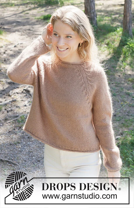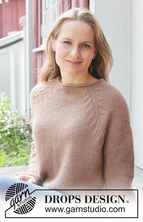 GARN: DROPS ALPACA fra Garnstudio (tilhører garngruppe A) 250-250-300-300-350-400 g farve 9031, mandel Og brug: DROPS KID-SILK fra Garnstudio (tilhører garngruppe A) 100-100-125-125-150-150 g farve 42, mandel