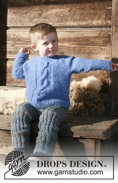 Strikket bluse med snoning og raglan til børn. Størrelse 2 - 12 år. Arbejdet er strikket i DROPS Air