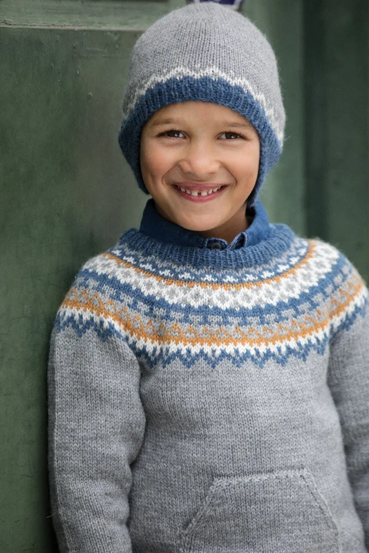 Sweater og hue strikket i Du Store Alpakka Sterk.