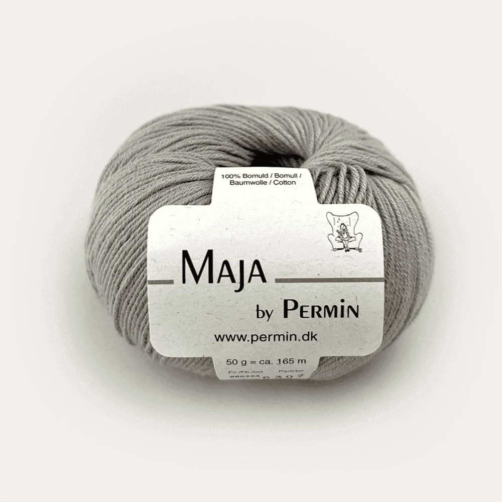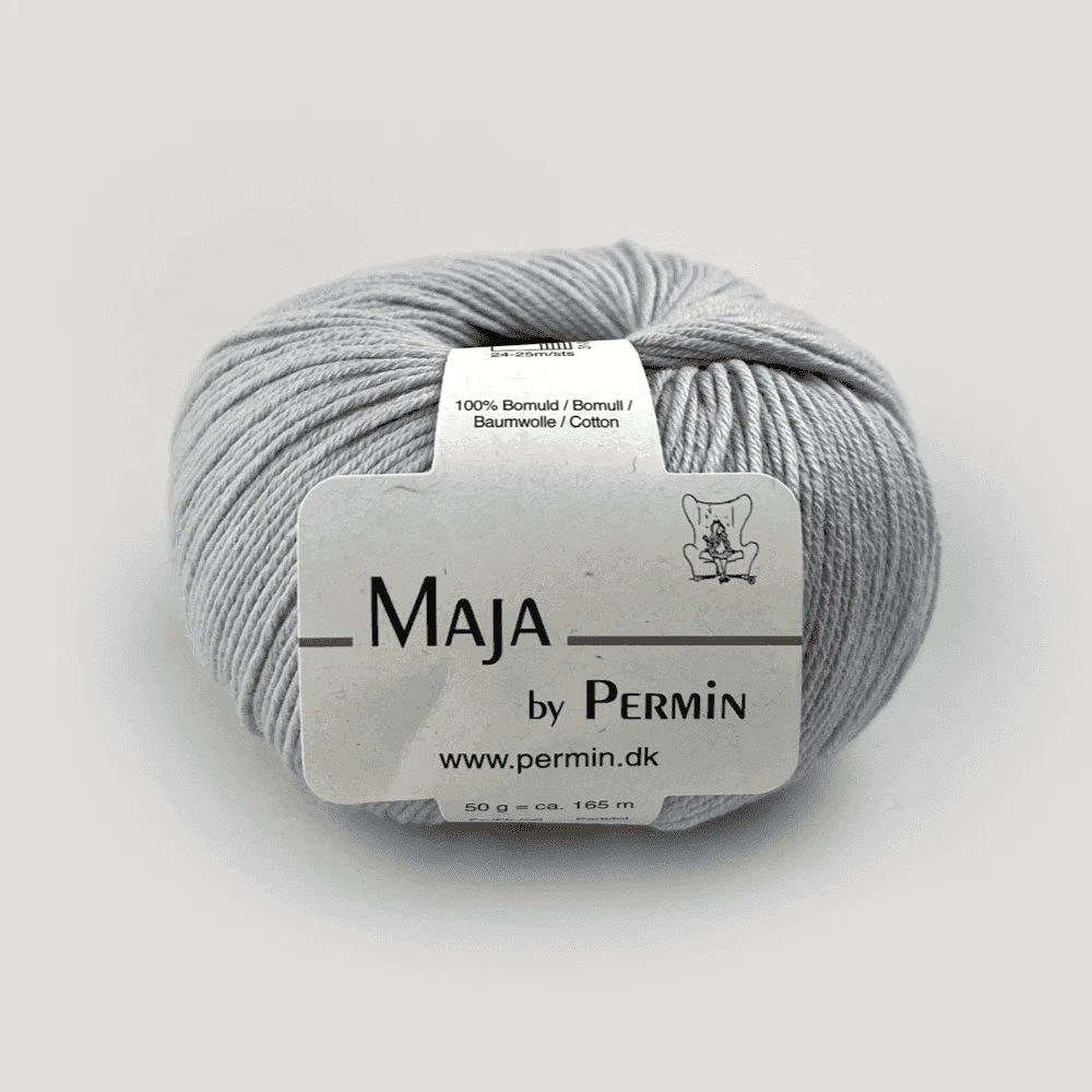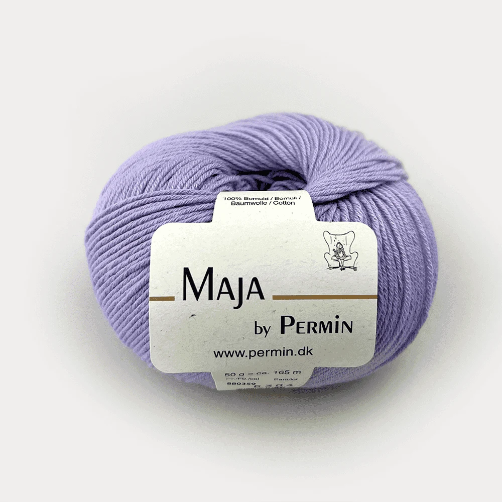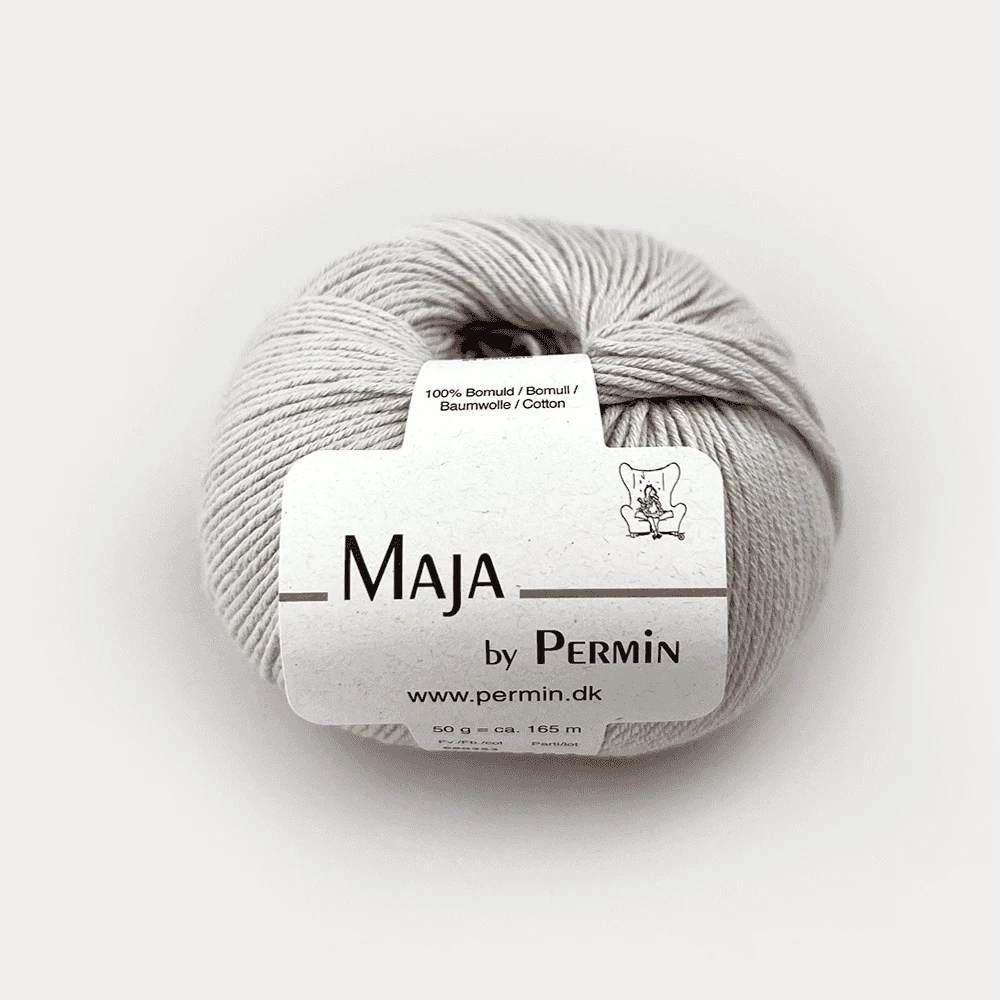 Permin Maja er et eksklusivt bomuldsgarn i 100% bomuld, der fås i 20 forskellige farver. De lange, tætspundne fibre gør garnet let og elastisk, hvilket giver et jævnt og eksklusivt resultat. For mere farverigt strik findes Maja også i en flerfarvet udgave, Maja Color by Permin.