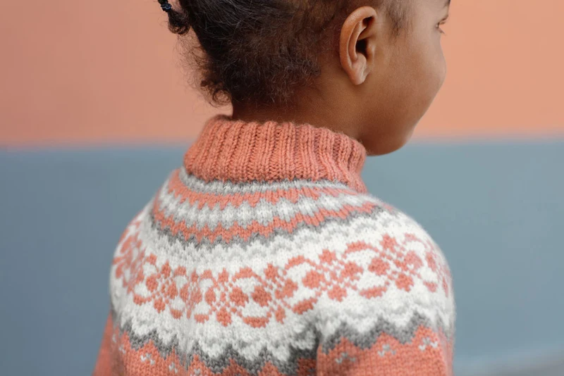 Strikket bluse i Dale Baby Ull. Størrelse 2-12 år.