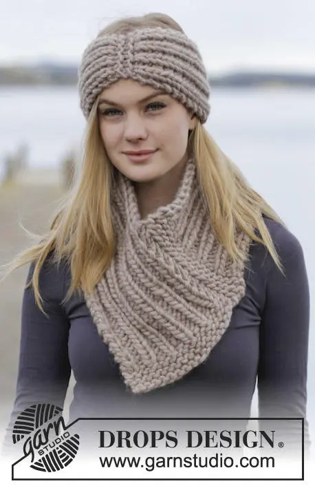 Sættet består af: Strikket DROPS pandebånd og hals i ”DROPS Polaris” med Rib.