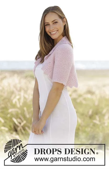 Strikket bolero med forkortede pinde, hulmønster og retstrik i DROPS Baby Merino og DROPS Kid-Silk. Størrelse XS – XXL.