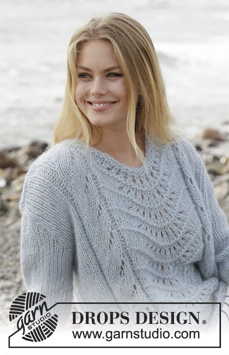 Strikket bluse med hulmønster. Størrelse S - XXXL. Arbejdet er strikket i DROPS Air og DROPS Brushed Alpaca Silk.