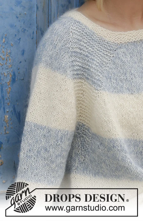 Strikket bluse med raglan og striber, strikket ovenfra og ned. Størrelse S - XXXL. Arbejdet er strikket i DROPS Alpaca og DROPS Kid-Silk