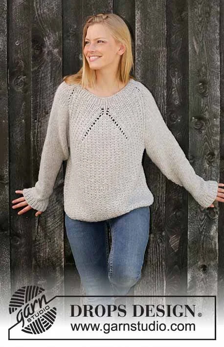 Strikket bluse med raglan i 2 tråde DROPS Sky. Arbejdet er strikket ovenfra og ned med struktur. Størrelse S - XXXL.