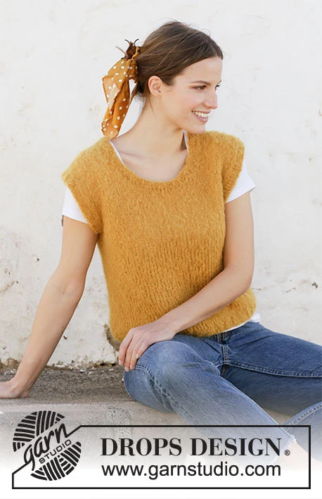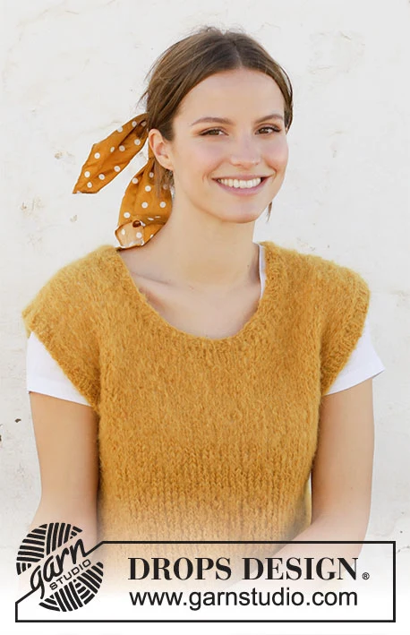 Strikket vest med rund hals i DROPS Melody. Størrelse S – XXXL.