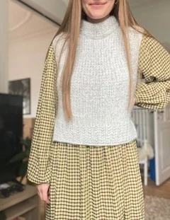 Astas vest er en begyndervenlig vest som strikkes oppefra og ned, således det er nemt at justere længden på vesten efter behov.