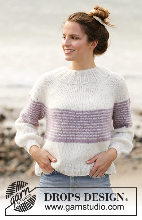 Strikket bluse i DROPS Air. Arbejdet strikkes ovenfra og ned med rundt bærestykke og striber. Størrelse XS - XXL.