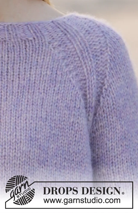 Strikket bluse med raglan i DROPS Air. Arbejdet strikkes ovenfra og ned med rib i raglanudtagningen. Størrelse S - XXXL.