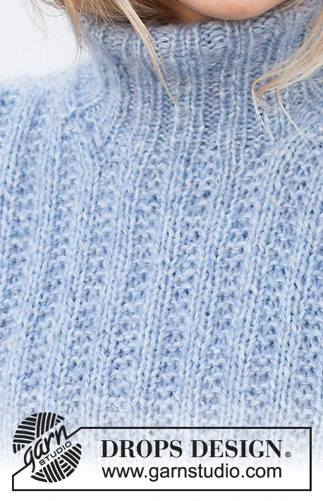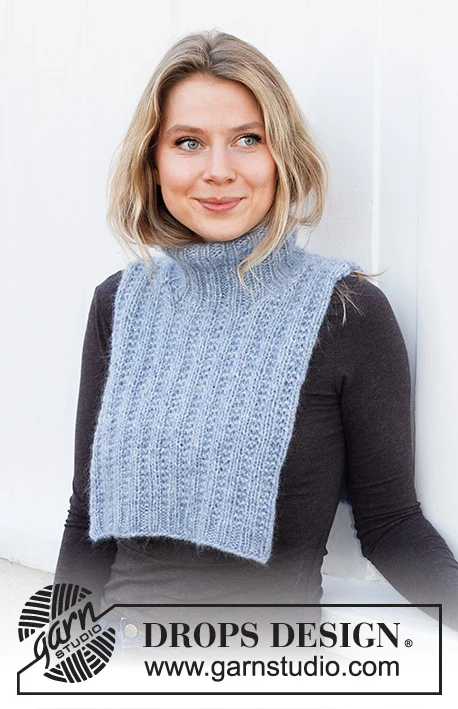 Strikket hals i DROPS Air og DROPS Kid-Silk. Arbejdet strikkes med strukturmønster.