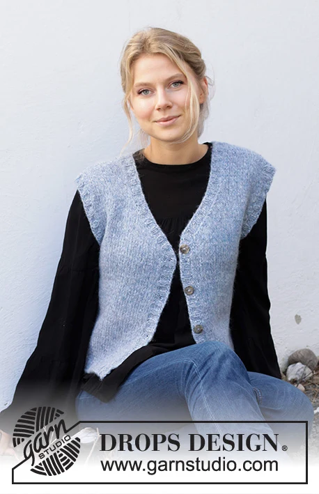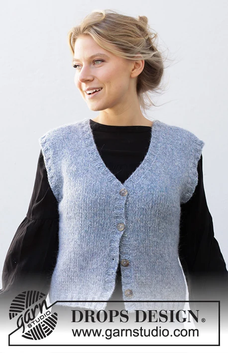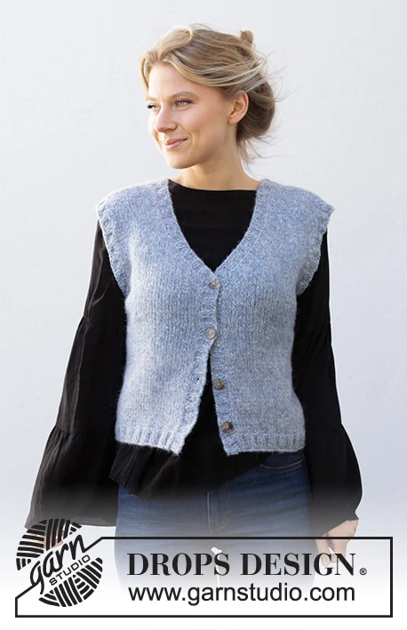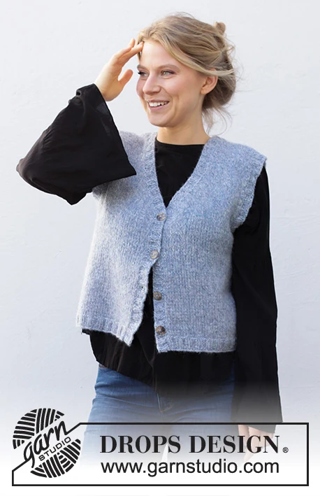 Strikket vest i DROPS Air med v-hals og ribkanter. Størrelse S - XXXL.