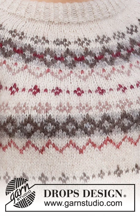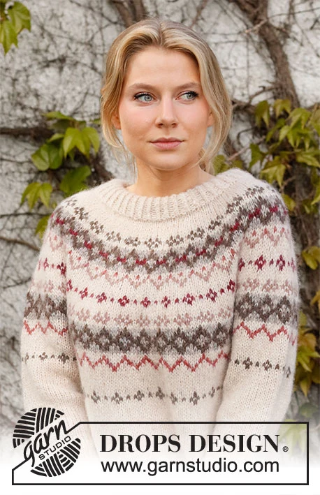 Strikket bluse i DROPS Air. Arbejdet strikkes ovenfra og ned med rundt bærestykke, nordisk mønster og dobbelt halskant. Størrelse S - XXXL.