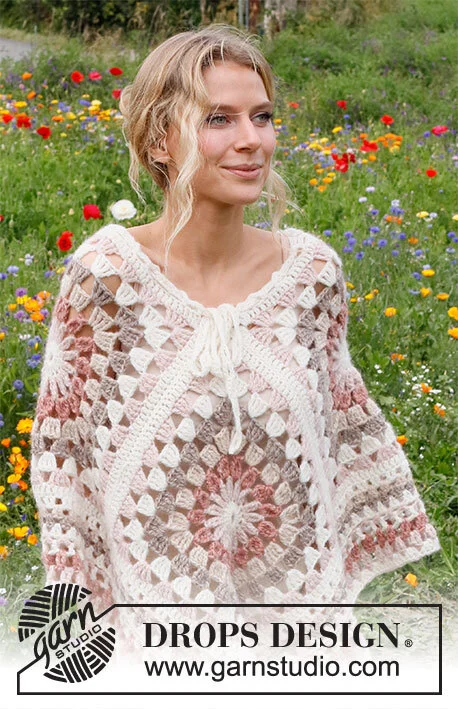 Hæklet poncho med ruder i DROPS Air. Størrelse S – XL.