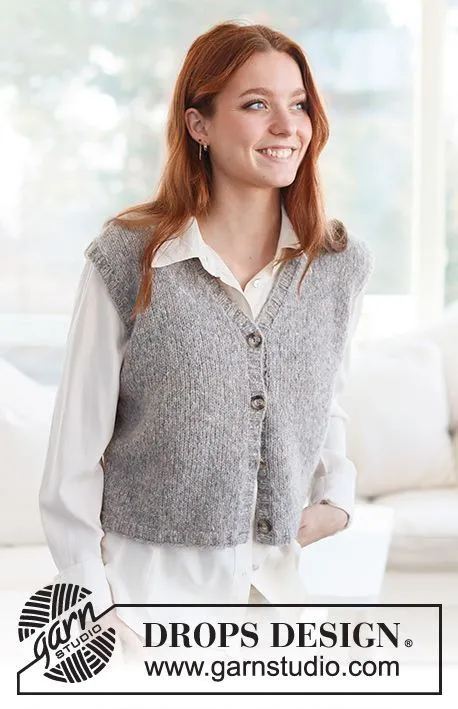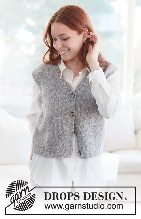 Strikket vest i DROPS Air. Arbejdet strikkes nedenfra og op med v-hals og glatstrik. Størrelse S - XXXL.