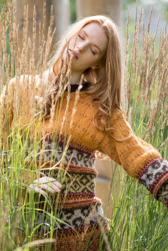 Sweater, løs hals & hue strikket i DSA Hexa & DSA Faerytale.