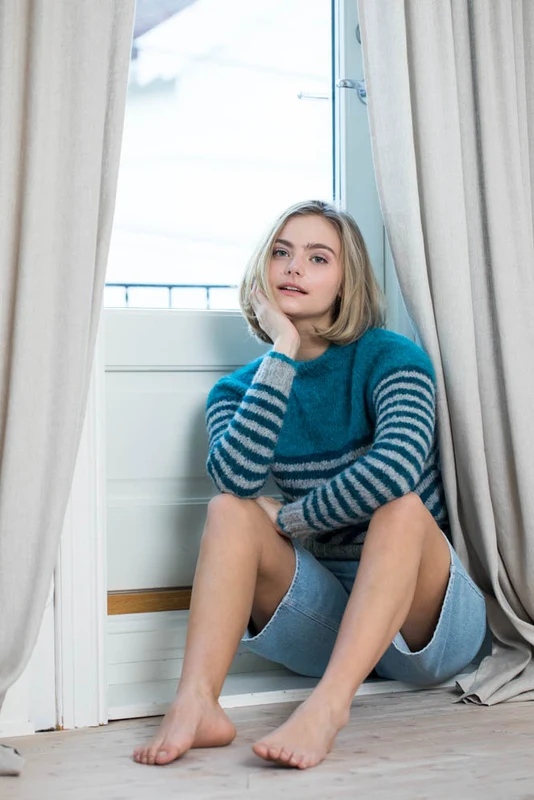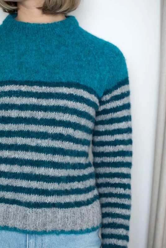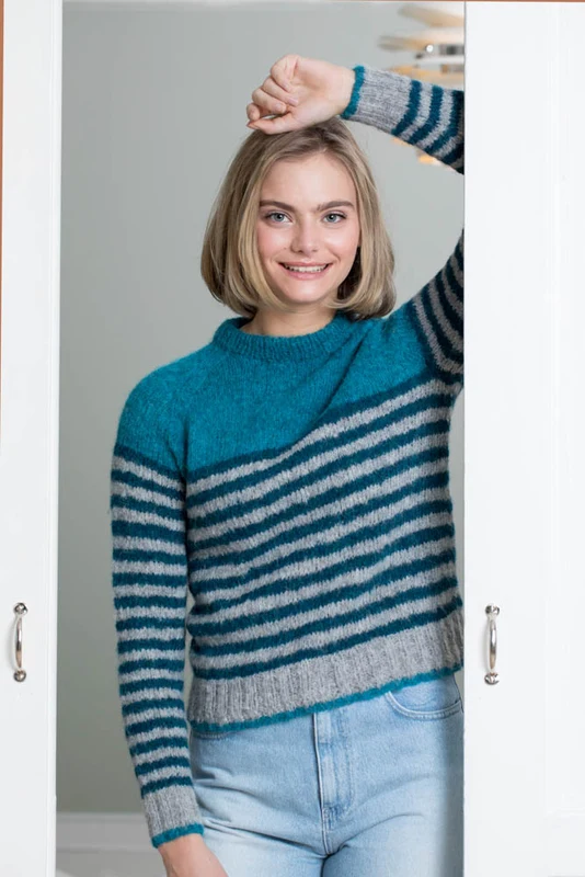Strikket bluse med striber i Du Store Alpakka Faerytale. Str. S-XXL.