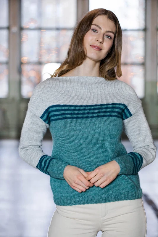 Bluse med farveskift og striber til kvinder strikket i Du Store Alpakka Sterk. Str. XXS-XXXL.