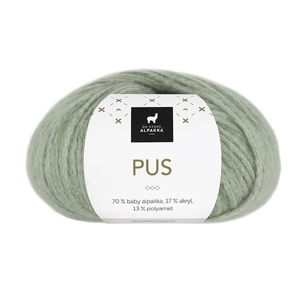 Du Store Alpakka Pus er et blødt, luftigt garn lavet af 70% baby alpaca, 17% akryl og 13% polyamid. Garnet er kabelspundet og overfladen er fint børstet. Det kan vaskes ved 30 grader i vaskemaskinen og fås i mere end 30 forskellige farver.