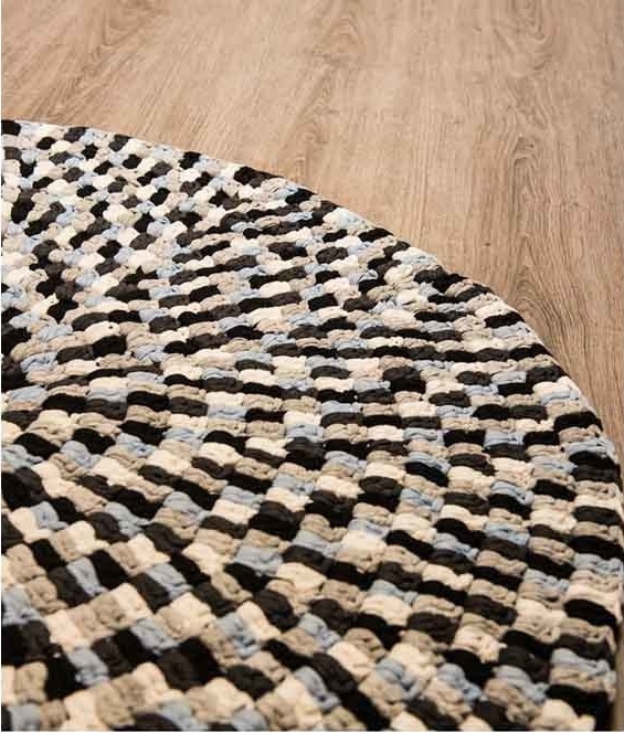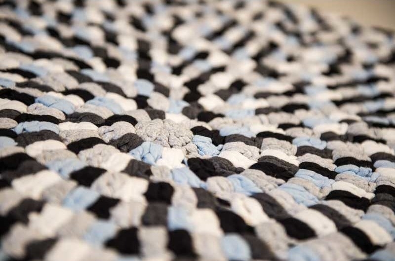 Et hæklet gulvtæppe kan også gøres mere kompakt. Dette kan gøres ved at hækle i et tættere mønster som her, hvor der er brugt Ribbon fra Mayflower. Garnet er yderst velegnet til gulvtæpper, da det tåler vask ved op til 40 grader. Det tykke garn er både elastisk og lækkert at arbejde i. Desuden kræver det en stor hæklenål, så arbejdet er hurtigt færdigt.