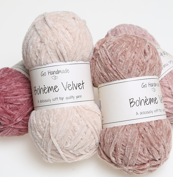 De hæklede scrunchies kan laves lige efter dit ønske. Hvis du ønsker en mere chunkie scrunchie, så kast dig ud i at lege med velourgarn som det bløde Bohéme Velvet Fine fra Go Handmade. Garnet er sjovt og udfordrende at arbejde i og giver et helt fantastisk resultat med det flotte spil i velourgarnet.