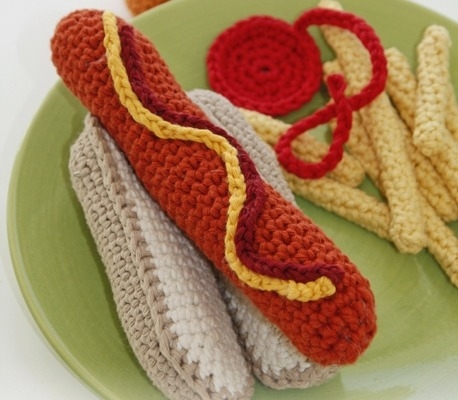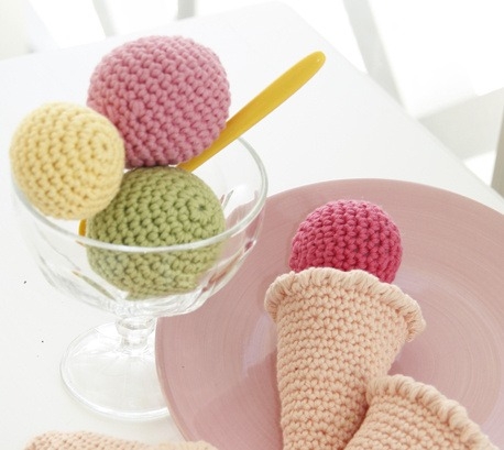 En anden fremragende gave til de yngre børn fra 3-8 år er hæklet legemad. Maden kan laves meget realistisk og passer perfekt ind i legekøkkenet derhjemme. Det er desuden en fremragende måde at få brugt sine rester på, da det kræver meget små mængder af mange forskellige farver. Vi anbefaler at hækle legemaden i bomuldsgarn, da det kan maskinvaskes, hvis nu maden skulle have i munden eller på gulvet. Heldigvis har vi et kæmpe udvalg af bomuldsgarn, så du er sikker på at finde den helt rigtige nuance til jordbærisen eller pizzaskorpen.