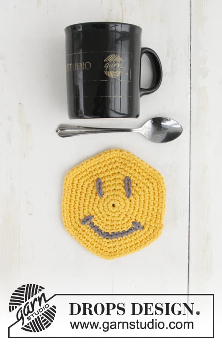 Hæklet bordskåner med smiley til Halloween. Arbejdet er hæklet i DROPS Paris.