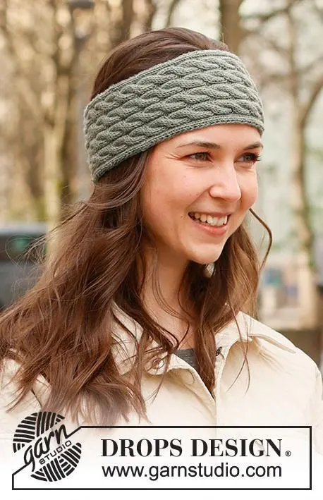 Strikket pandebånd med snoninger i DROPS Baby Merino. Arbejdet strikkes frem og tilbage.