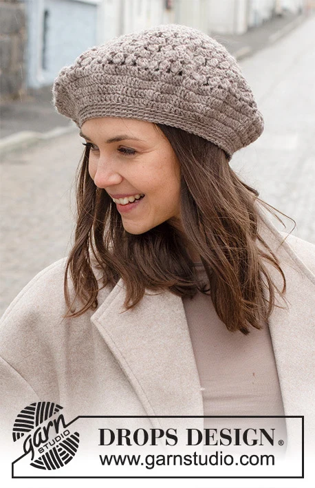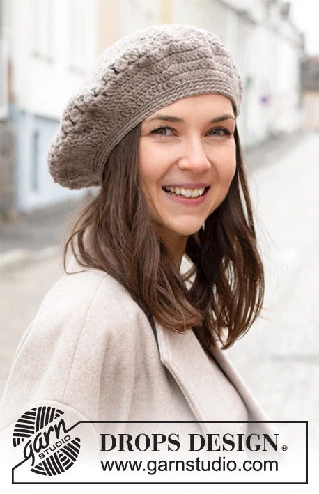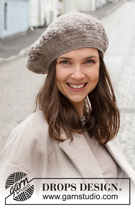Hæklet baskerhue i DROPS Karisma. Arbejdet hækles med bobler.