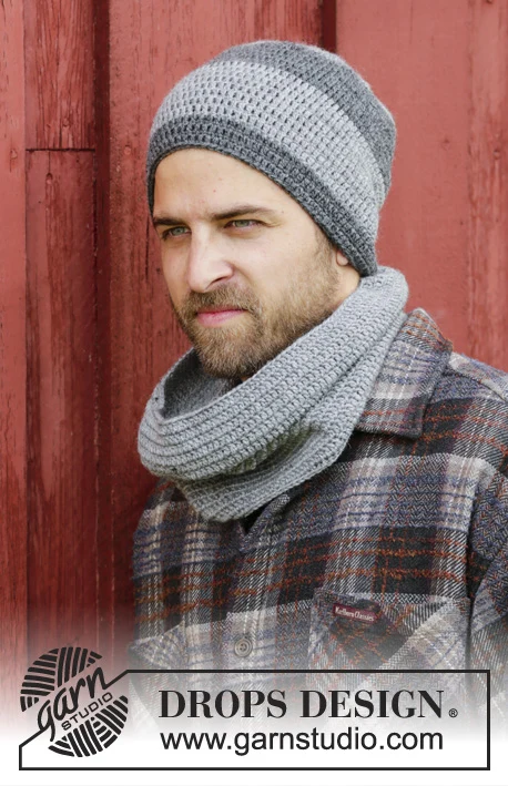DROPS Design: Model nr u-807 Garngruppe B ---------------------------------------------------------- HUE: Størrelse: S/M - L/XL Passer hovedmål: 57/59 - 59/62 cm Materialer: DROPS KARISMA fra Garnstudio 50 g i begge str i f.nr 16, mørk grå 50 g i begge str i f.nr 21, mellemgrå