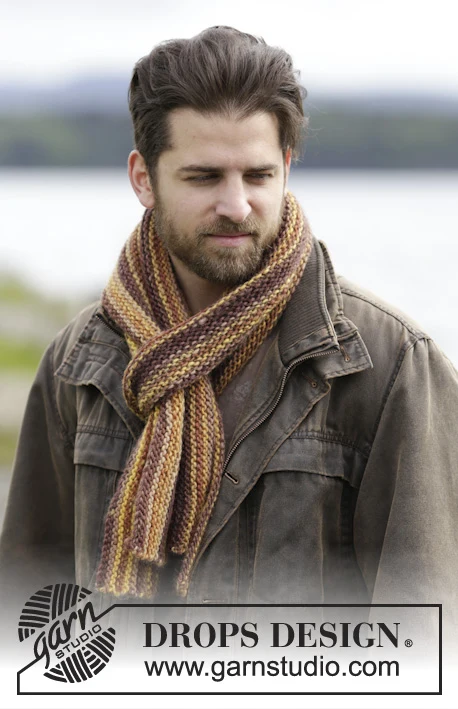 Strikket DROPS halstørklæde til herre i ”Big Delight” med retstrik, strikket på langs.