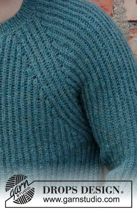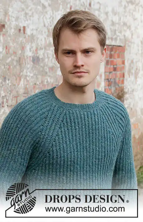 Strikket bluse med raglan til herre i DROPS Sky. Arbejdet strikkes ovenfra og ned med helpatent. Størrelse S - XXXL.