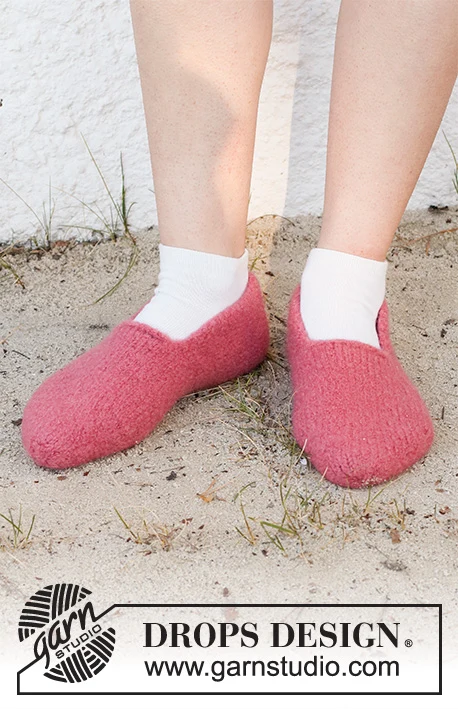 Strikkede og filtede tøfler i DROPS Alaska. Størrelse 35-44.