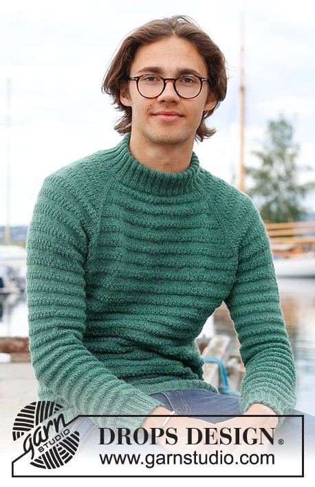 Strikket bluse til herre i DROPS Nord. Arbejdet strikkes oppefra og ned med raglan, strukturmønster og dobbelt halskant. Størrelse S - XXXL.