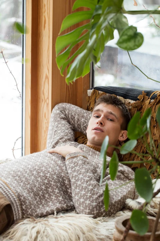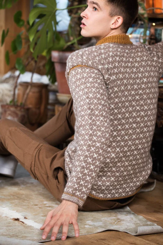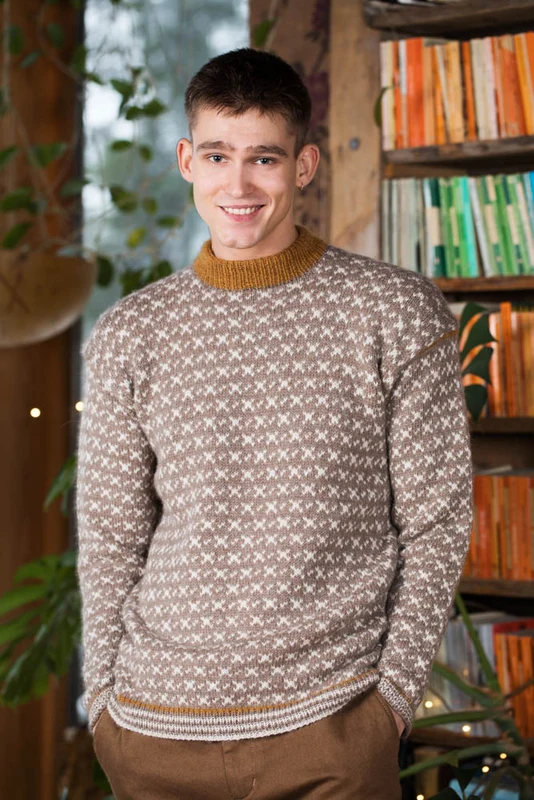 Bluse med mønster til herrer strikket i Du Store Alpakka Sterk. Str. S-XXL.