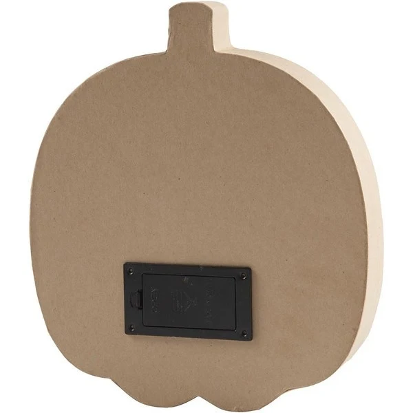 Græskarret af papmaché har udskæringer af transparent stof, som giver en skræmmende effekt grundet et batteridrevet lys.