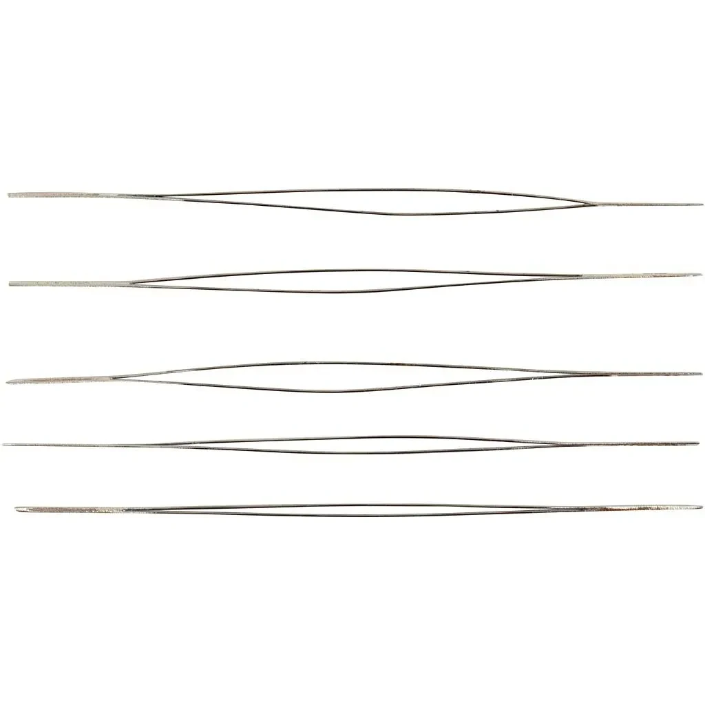 I denne pakke får du 5 geniale specialnåle fremstillet af 2 stykker tynd wire, som man blot lægger smykketråden imellem