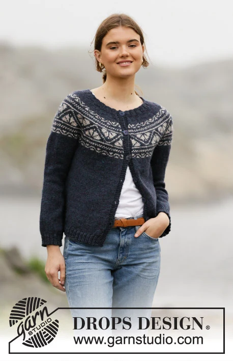 Strikket jakke i DROPS Karisma. Arbejdet strikkes ovenfra og ned med rundt bærestykke og nordisk mønster på bærestykket. Størrelse S - XXXL.
