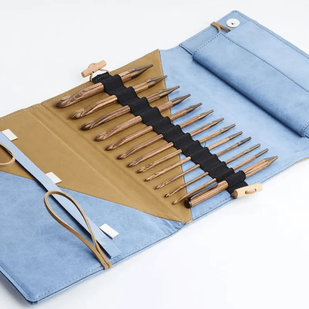 Det pæne etui i denim med beige finish holder dit udstyr organiseret og er nemt at tage med på farten. Sættet inkluderer også en matchende pen, perfekt til at markere din mønsterrække og holde styr på dit arbejde.